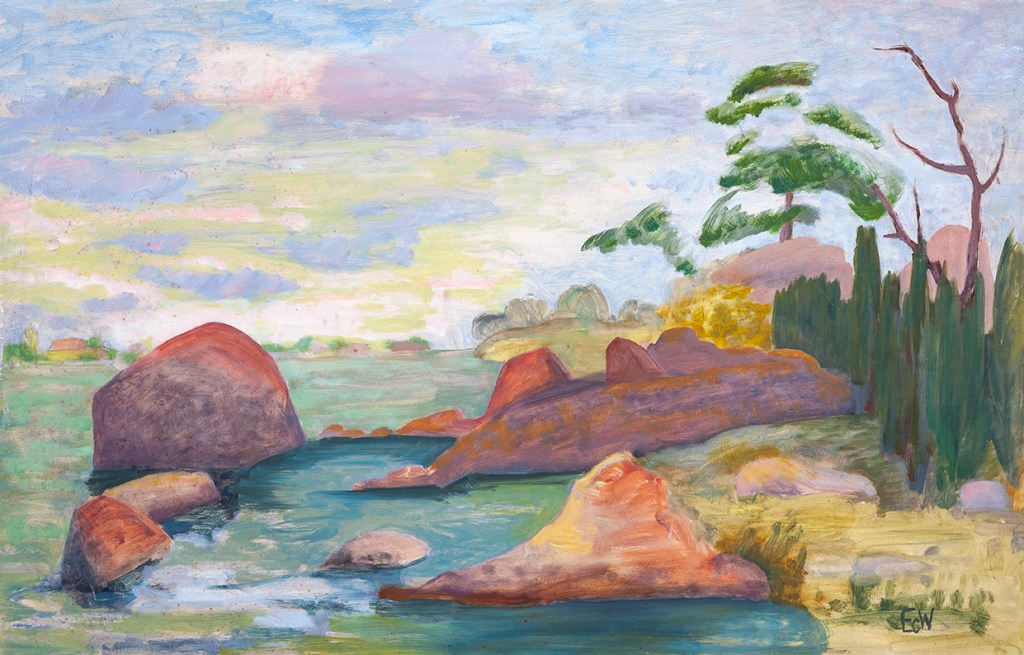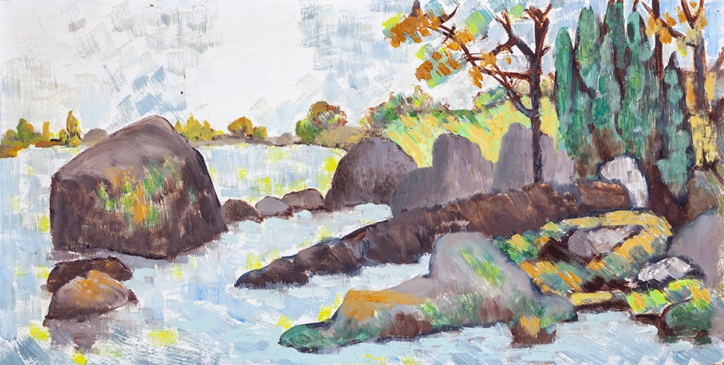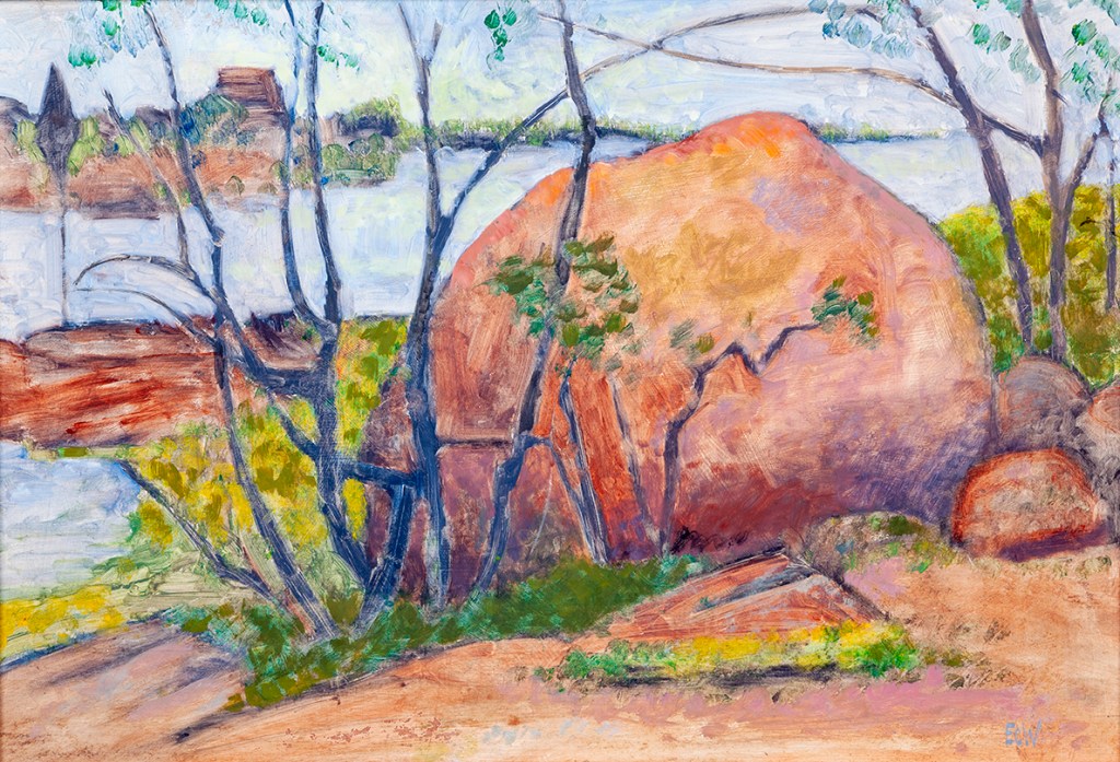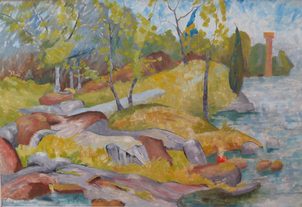 Ted visited friends in Sweden with his family in 1977. These paintings are all of Funkön island, Ronneby.
